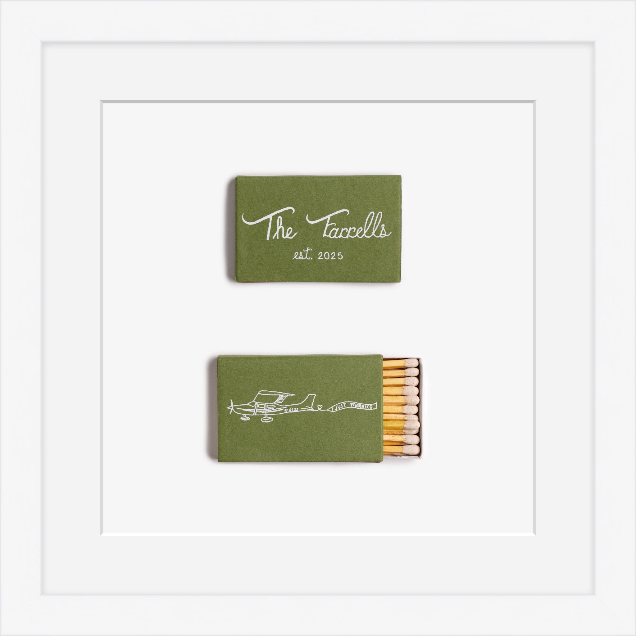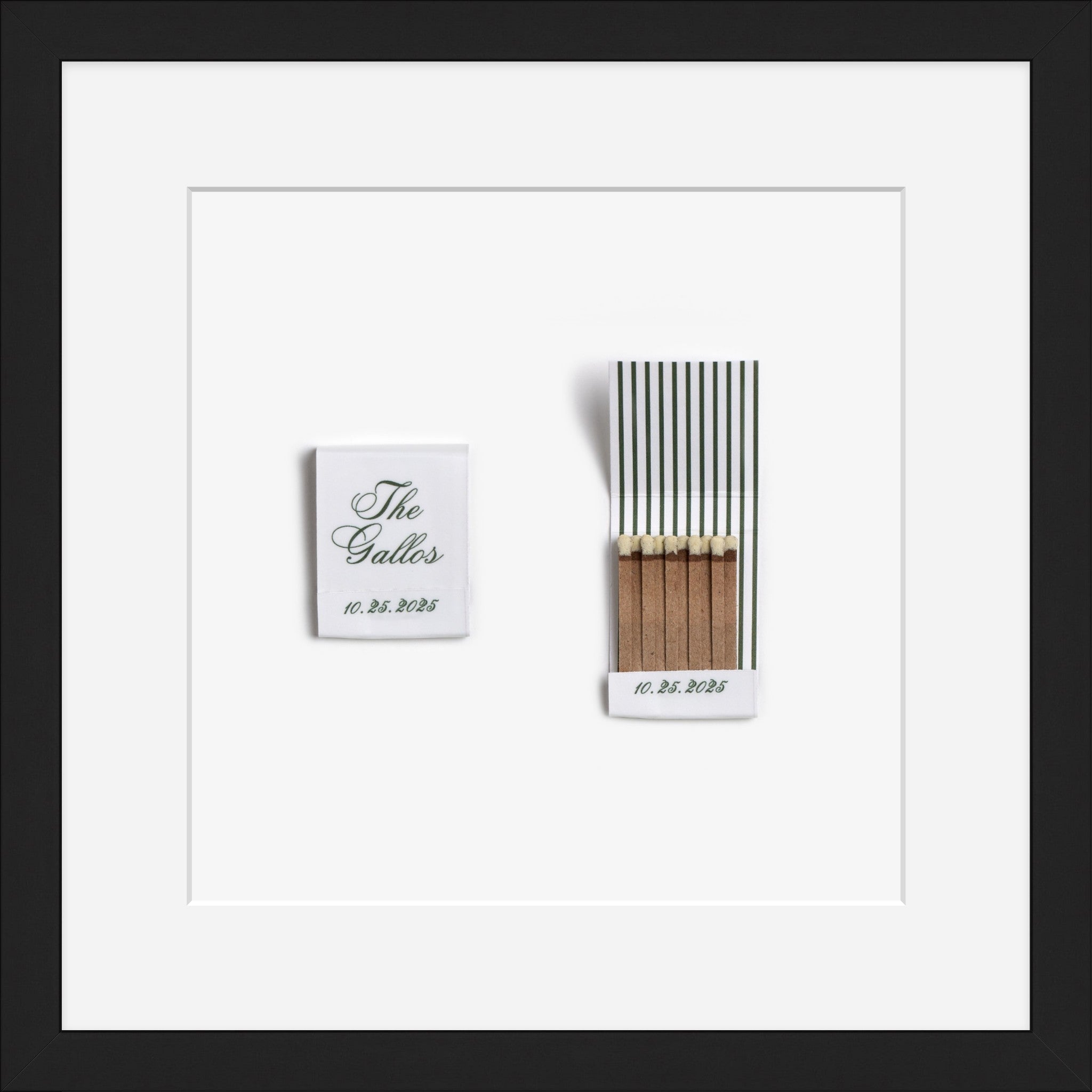Your own custom matchbooks, photographed + framed.